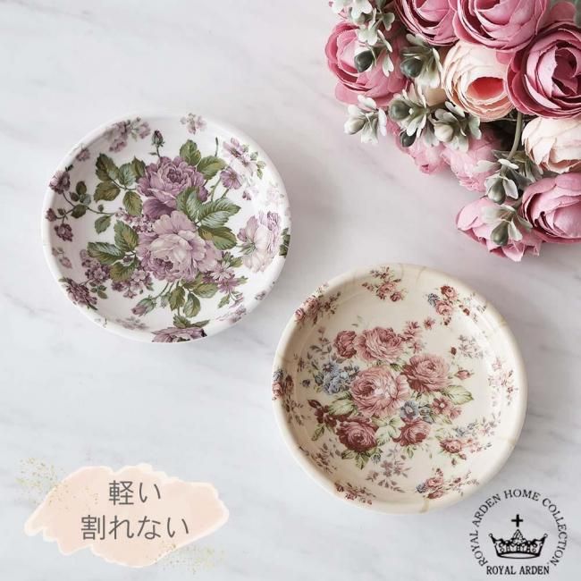小皿 ロイヤルアーデン 薔薇 ローズ かわいい メラミン 割れない おしゃれ 花柄 バラ 軽量 取り皿 食器