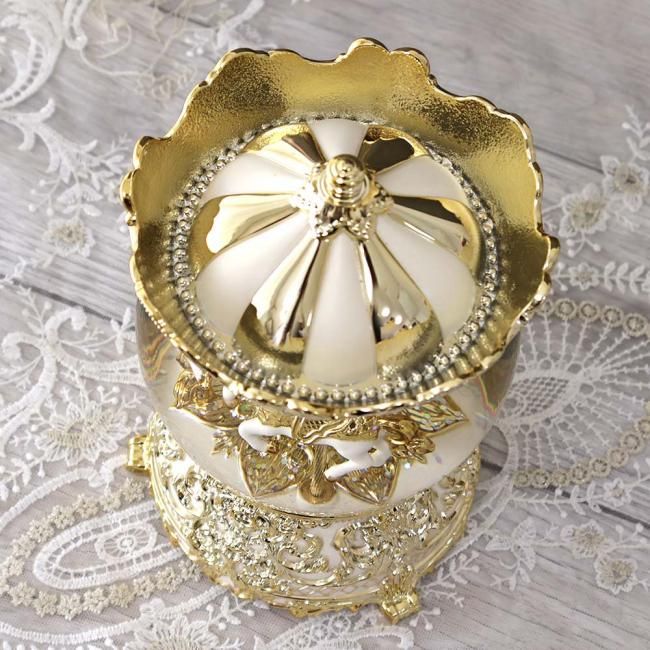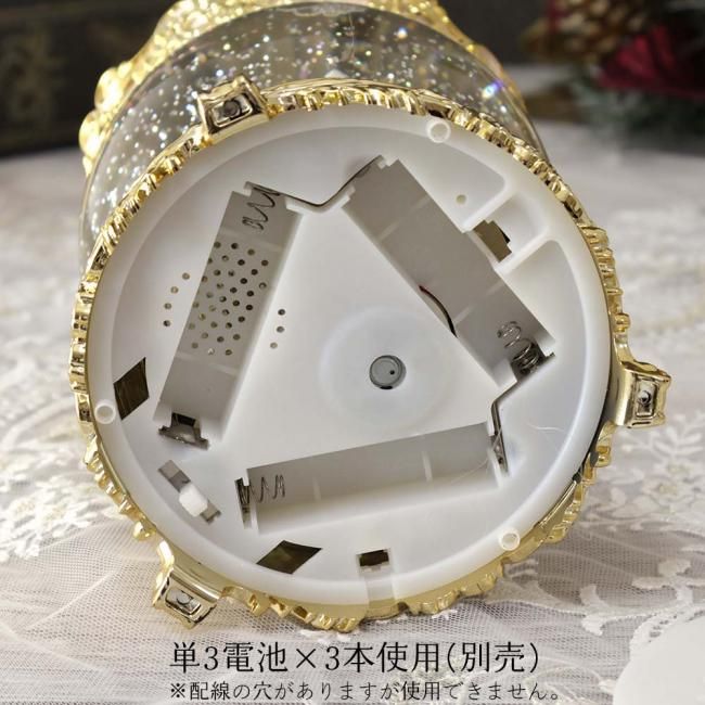 点灯するとドームの中のカルーセルが回転し、ゴールドのラメが舞い上がります。