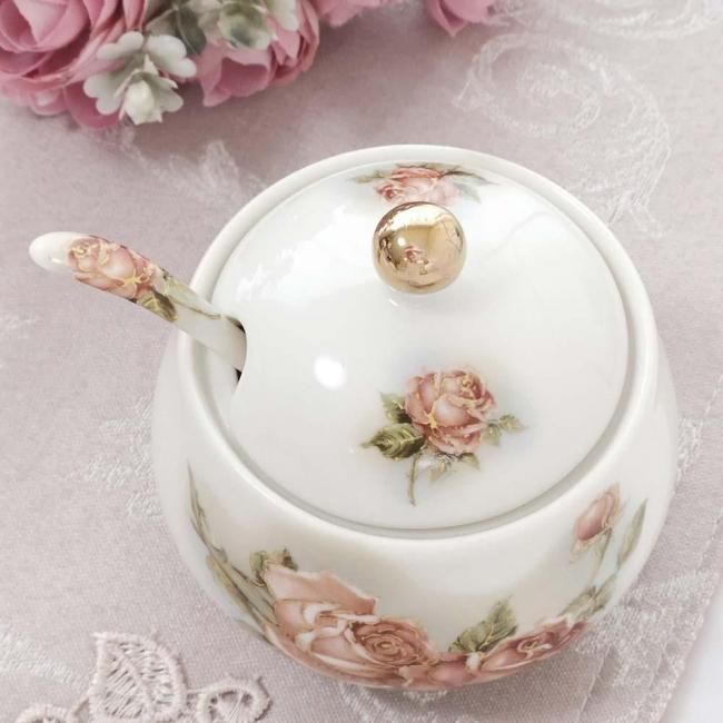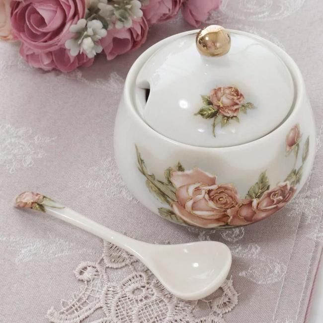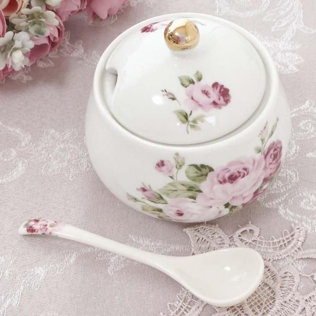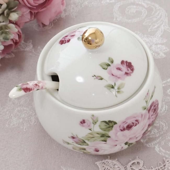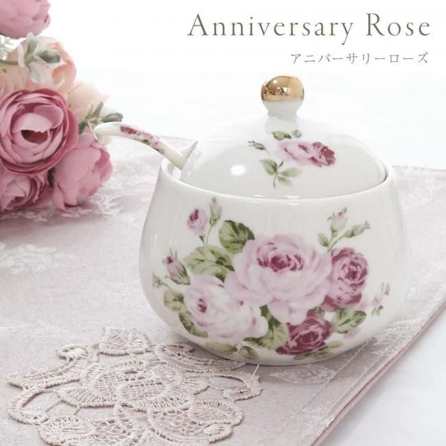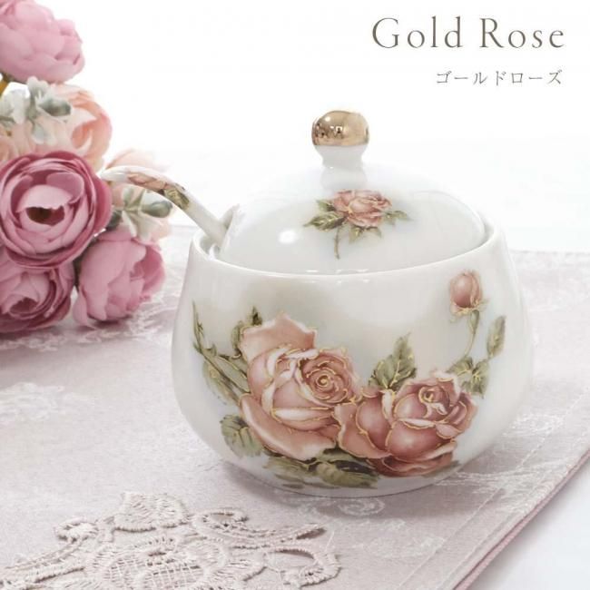 シュガーポット アニバーサリーローズ ゴールドローズ 日本製 薔薇 花柄 スプーン付き 陶器 エレガント 華やか ラグジュアリー キッチン雑貨 かわいい おしゃれ