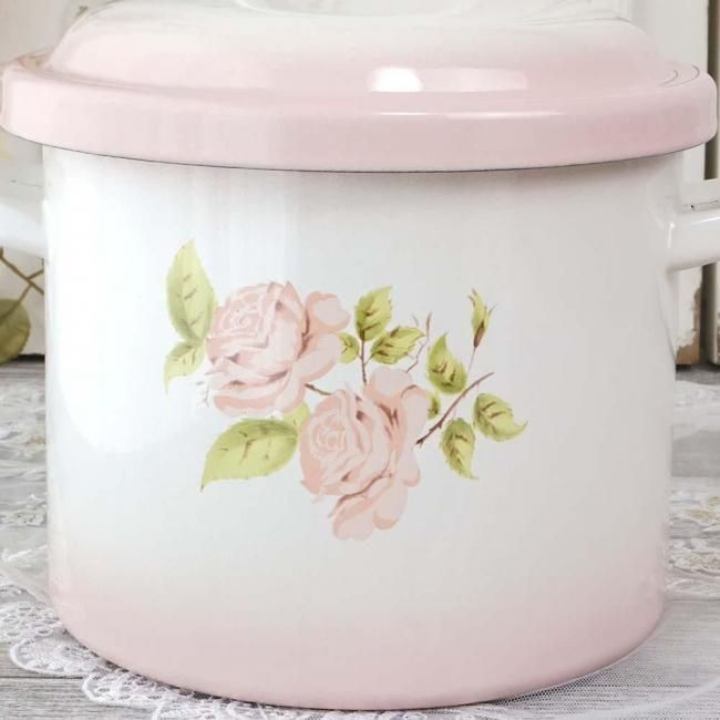 大輪のローズが咲いたポットやお鍋、食器たち。1世紀以上経てもなお優しい色彩を放っています。 機能性よりも心を豊かにさせる愛らしいデザイン・・・