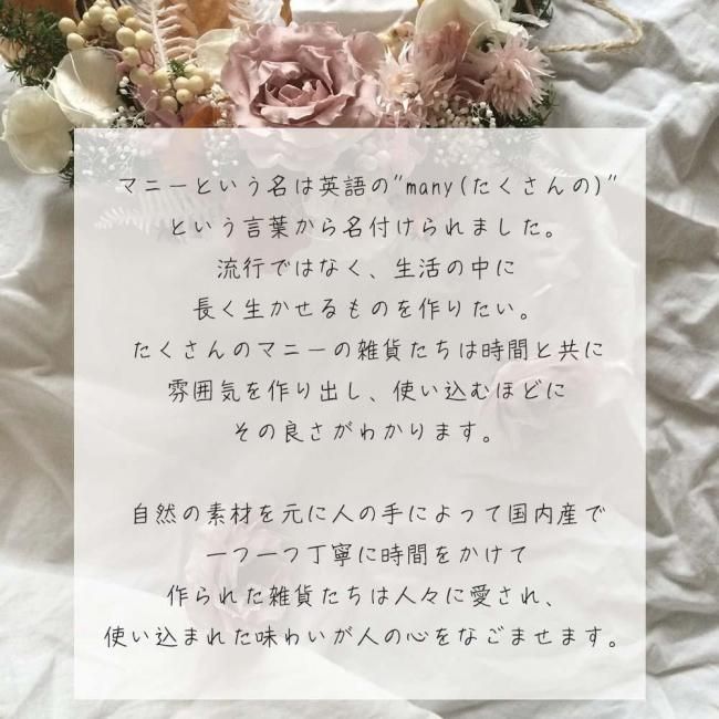 たくさんのマニーの雑貨たちは時間と共に雰囲気を作り出し、使い込むほどにその良さがわかります。