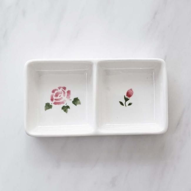 マニー Many ラ・フロレゾンシ 2仕切りプレート 小分け 前菜 薬味 皿 プレート オードブル 薔薇 ローズ ピンク かわいい 食器 クラシカル おしゃれ プレゼント ギフト 電子レンジ・食洗機可