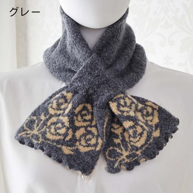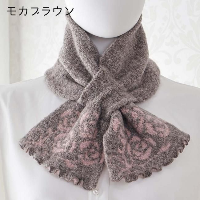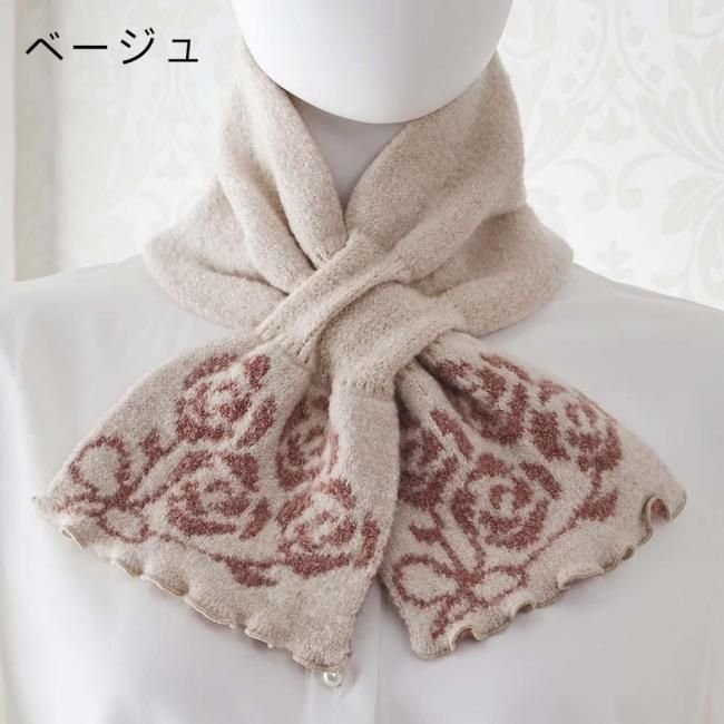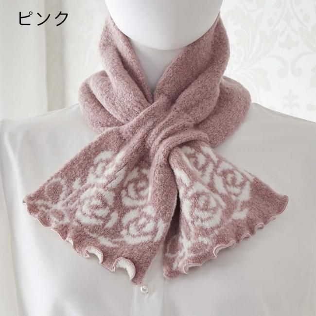 差込みマフラー ローズブーケ柄 ローズブーケ マフラー 薔薇 ローズ 花柄 かわいい おしゃれ エレガント ピンク グレー モカ ベージュ
