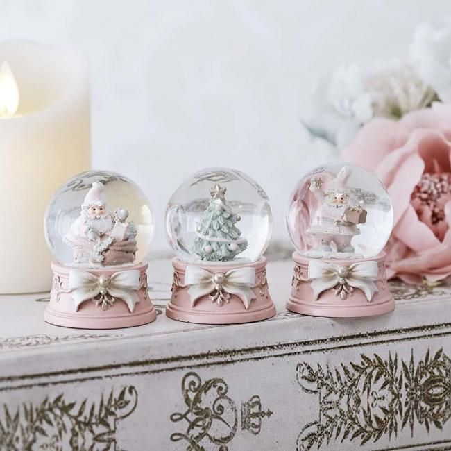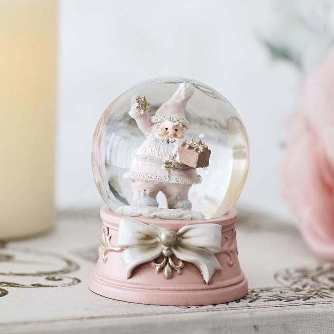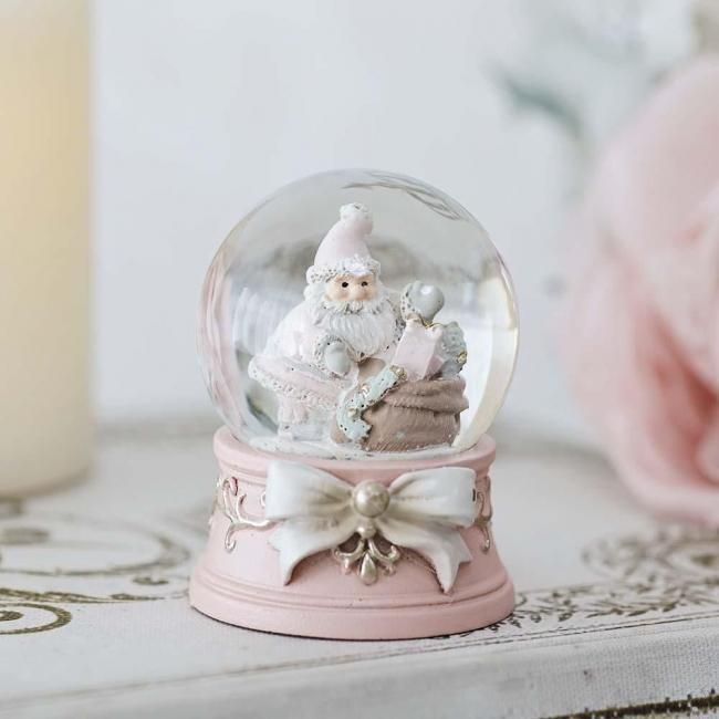 パステルピンクのかわいいサンタクロースのミニスノードームオブジェ。