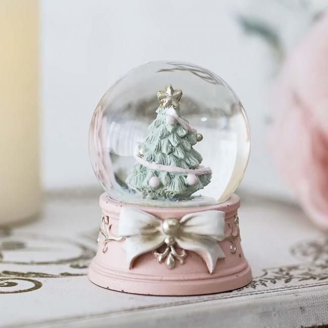 ピンクリボンミニスノードーム オブジェ 置物 サンタクロース かわいい おしゃれ インテリアエレガント 豪華 飾り ディスプレイ プレゼント