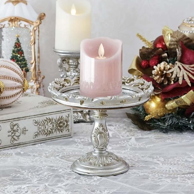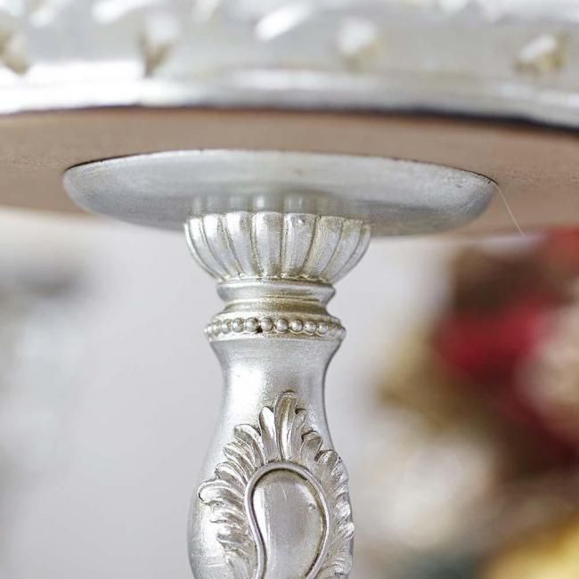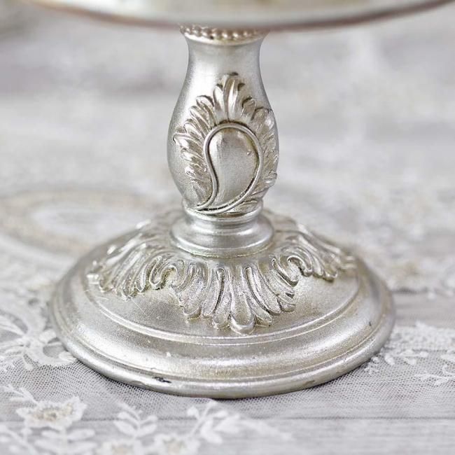 アンティーク調のシルバーカラーとデコラティブな装飾が高級感のある雰囲気で、オブジェやLEDキャンドルなどをアレンジして飾ると素敵です。