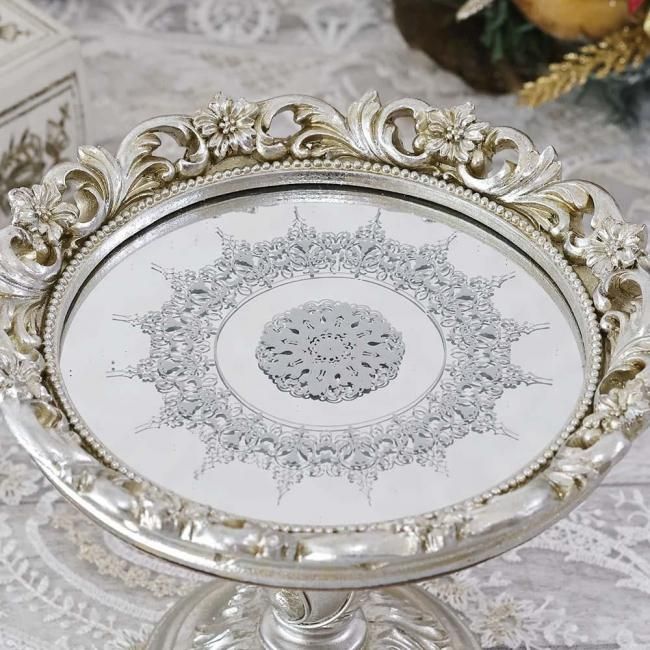 フラワーフリルミラートレイ シルバー トレー アンティーク クラシカル おしゃれ エレガント インテリア 華やか お洒落 可愛い かわいい 置物 ディスプレイ